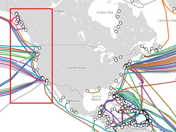 Major Internet Hubs are located on the west coast of North amareica
