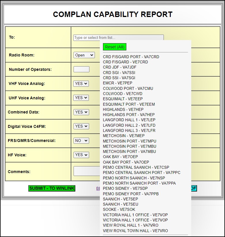Complan Capability Report: During an activation, your station should send capability reports to your (MRP) Mutual Radio Partners so they will know your status. As things change, you would send an update using the same form.