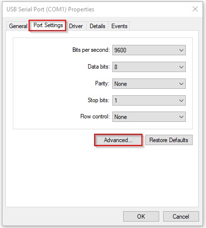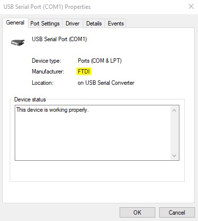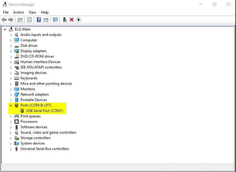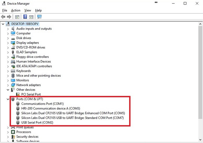 Note: If you are using a RS232 serial cable then it will be listed as - Communications port(COM?)