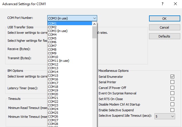 Choose the Comport you want it to be....(as long as it is not physically used)